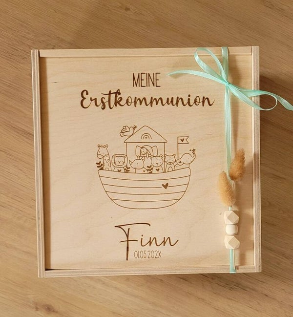 Personalisierte Erinnerungsbox zur Taufe – Holz-Schatzkiste mit Name & Motiv (Arche Noah) – Geschenkidee für Paten, Oma, Großeltern 🎁✨