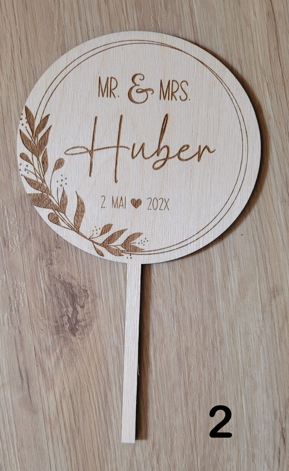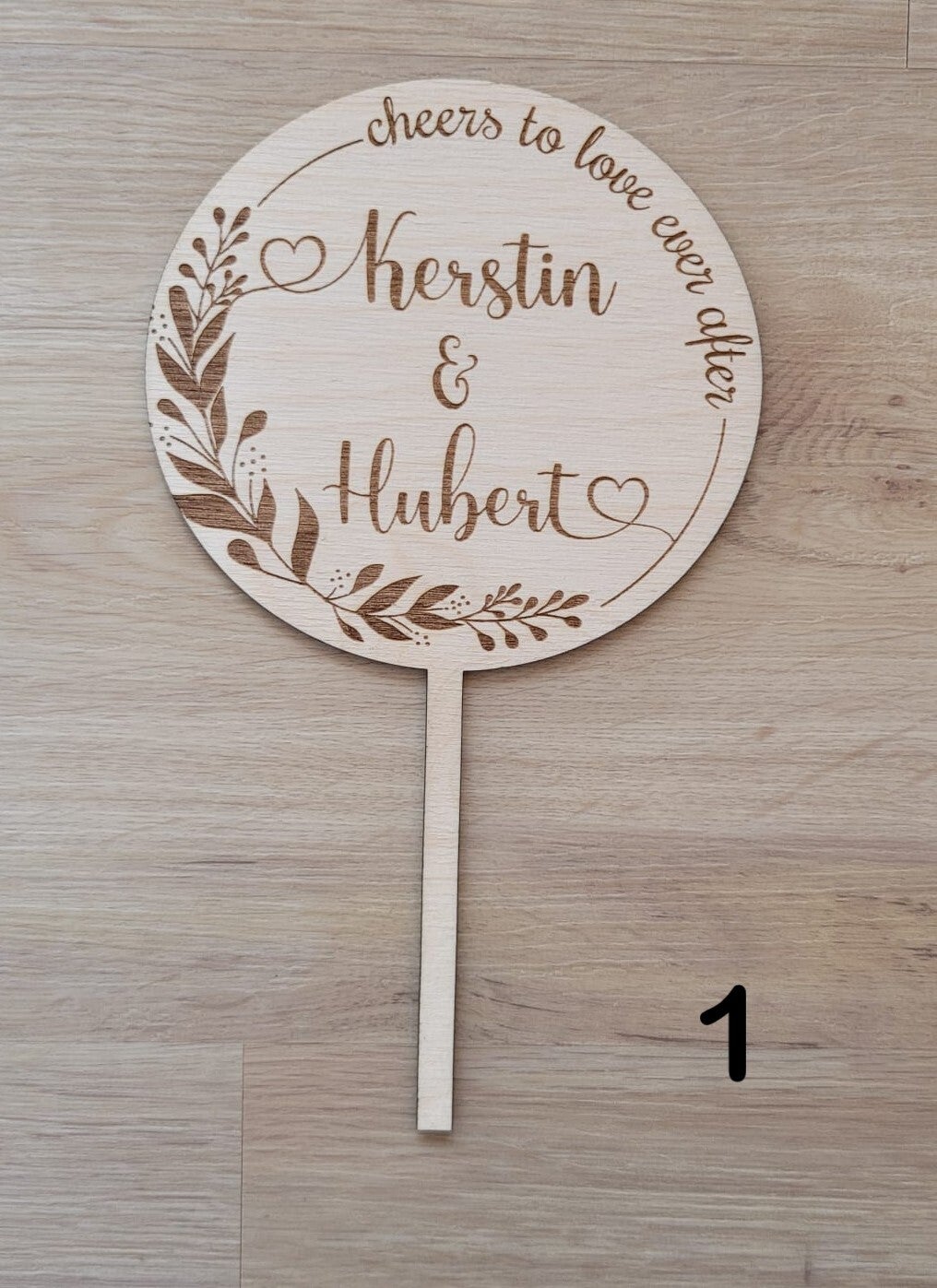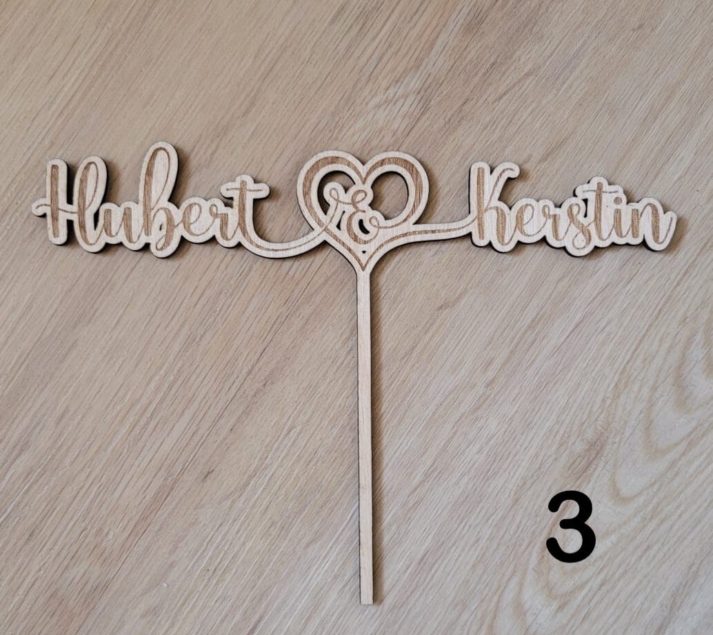 Machen Sie die Hochzeitstorte zu etwas ganz Besonderem mit unserem personalisierten Cake Topper! Dieses einzigartige Stück ist perfekt für die Hochzeit und wird mit den Namen und dem ggf. Datum Ihrer Wahl versehen.