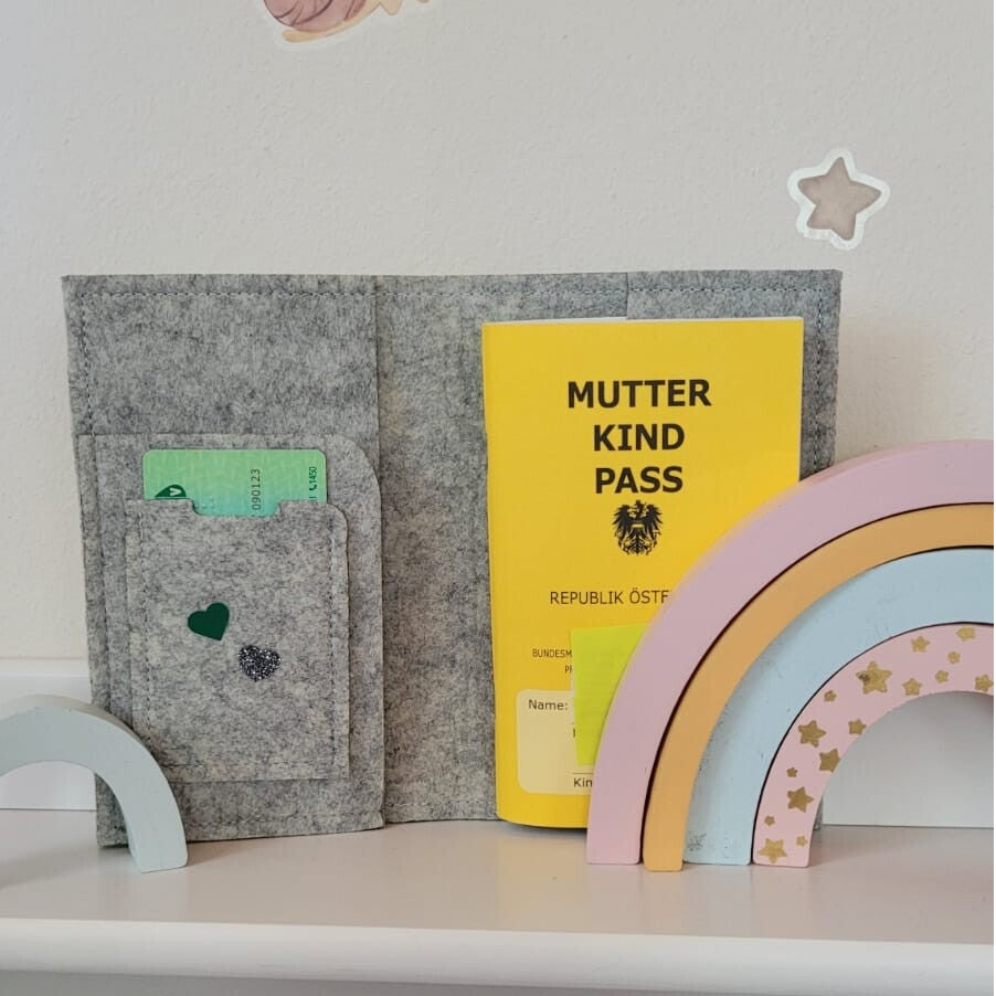 Schütze euren Eltern-Kind-Pass (Mutter-Kind-Pass) mit unserer personalisierten MuKi-Pass Hülle aus Filz.