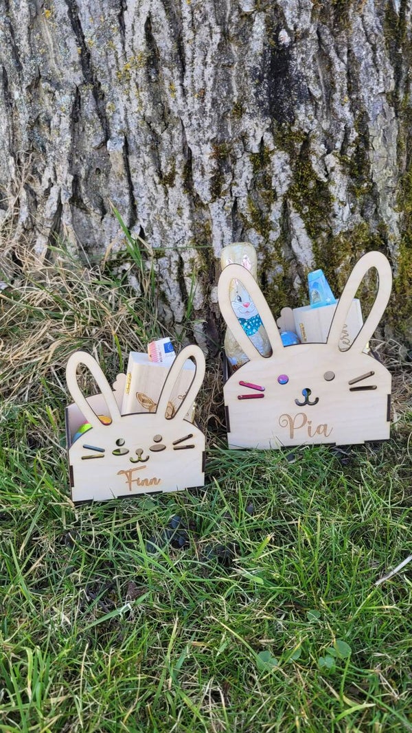 🌸 Personalisiertes Osternest mit Namen – Osterkorb aus Holz 🐰 Geschenk – Osterkörbchen aus Holz