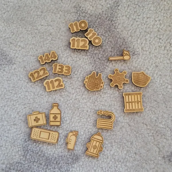 Die Aktivitätsplatte Einsatzkräfte: Feuerwehr, Polizei, Rettung aus naturbelassenem Schichtholz erweitert die Nutzung von Stapelsteinen & Balanciersteinen um gezielte motorische & kognitive Übungen.