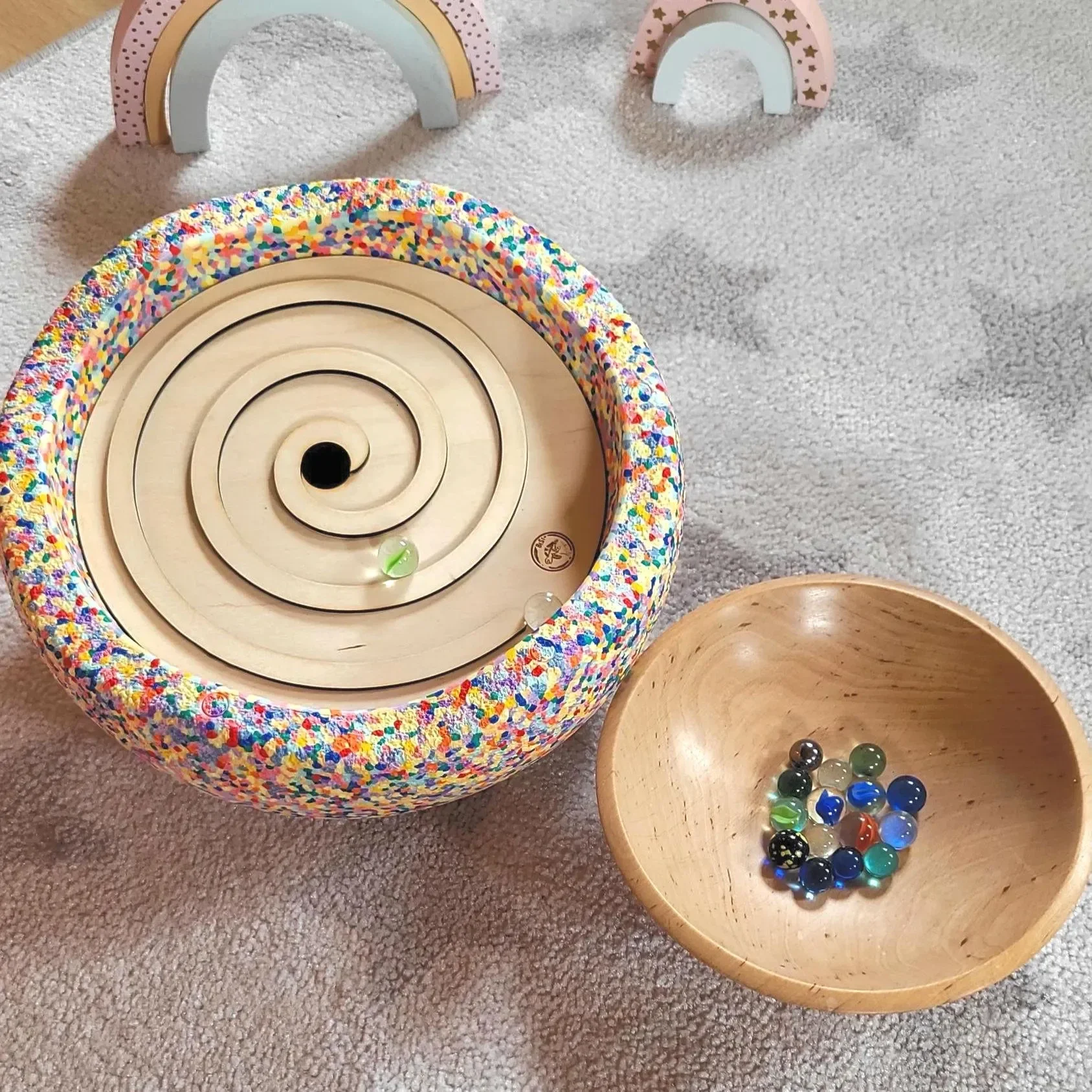 Murmel Bahn Aktivitätsplatte Stapelstein I Balanciersteine I Feinmotorik I Montessori I Zubehör für Stapelsteine zur motorischen Förderung I Spiral Platte
