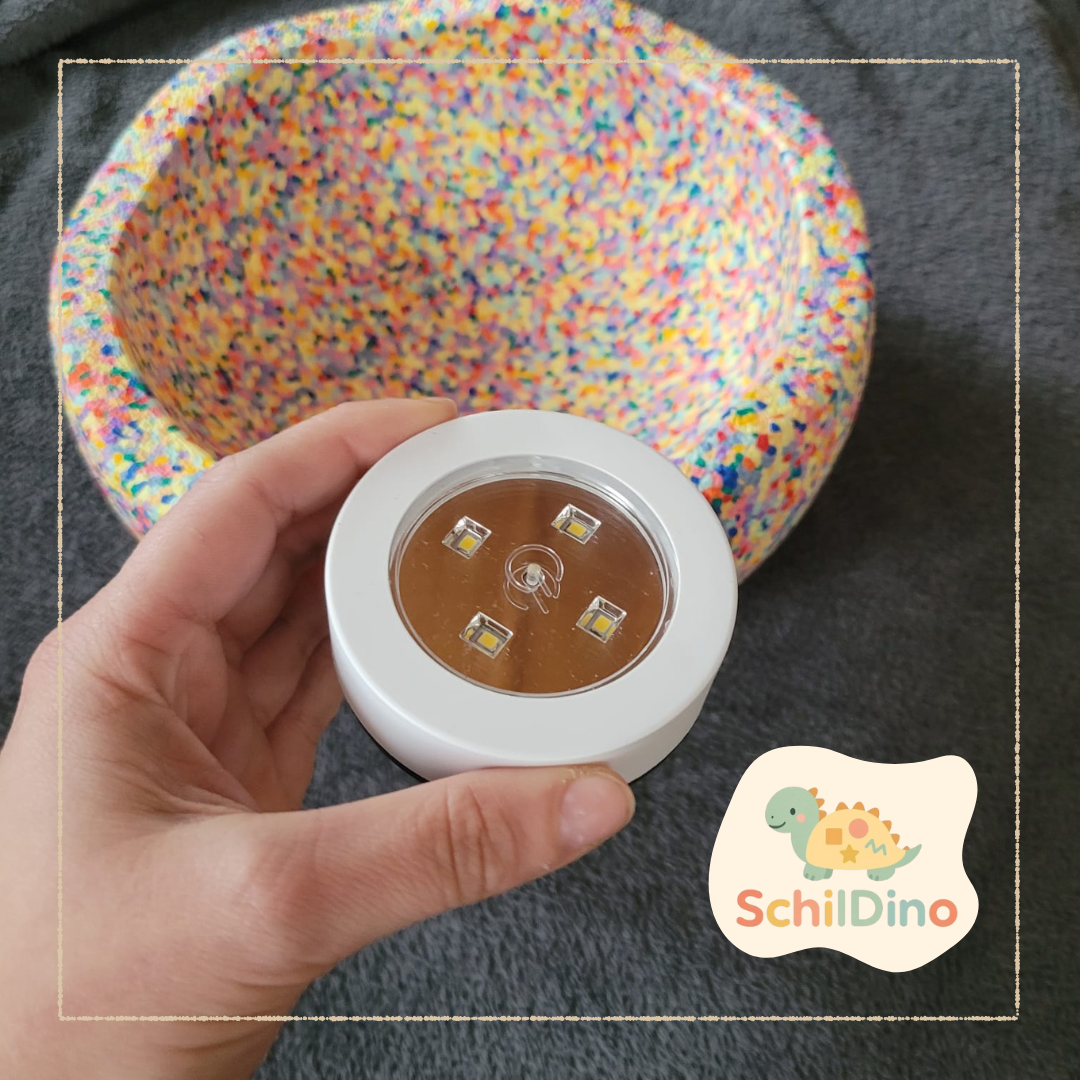 Eine Lichquelle wie eine kleine Taschenlampe, Lichterkette oder Knicklichter machen es zu einem ganz besonderen Erlebnis!