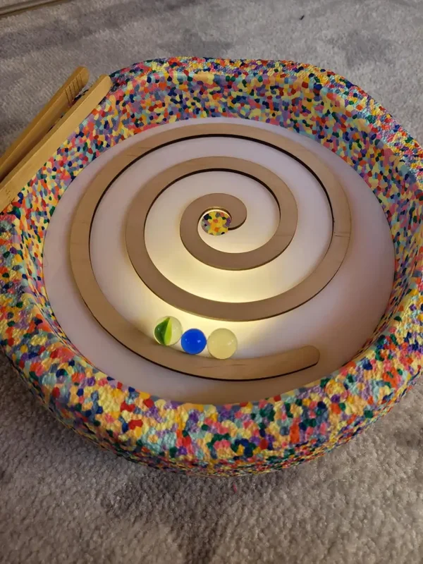 Murmel Bahn Lichtplatte Aktivitätsplatte Stapelstein I Balanciersteine I Feinmotorik I Montessori I Zubehör für Stapelsteine zur motorischen Förderung I Spiral Platte