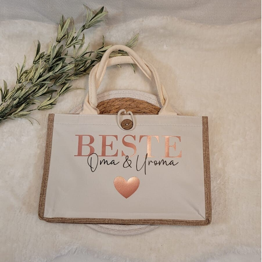 Tasche „Beste Oma & Uroma“ | Filz oder Jute | Geschenk zum Muttertag, Geburtstag oder zur Geburt | Kleine Einkaufstasche 20x30x5 cm