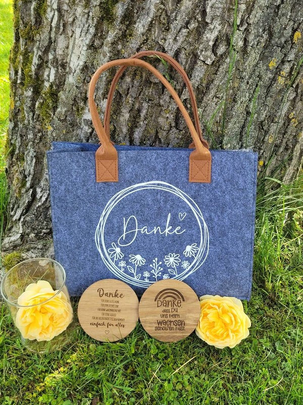 Die Gläser passen perfekt in eine unserer Filztaschen, zum Beispiel mit einem "Danke" - schau gerne vorbei!